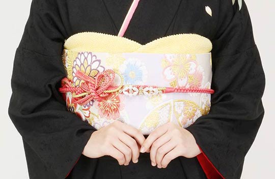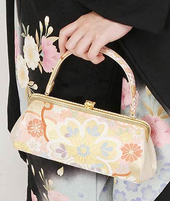 高貴な色であり、また締め色としても使われやすい濃紫も、多用してしまうと重たい印象に。 帯やほかの小物がぼやけてしまっている。 エナメルのバッグが色合わせが難しく、安っぽく見えてしまう 黒色の着物に地味な帯を合わせたため、華に欠けるコーディネートになってしまった。 着物にあしらわれたパステルカラーを小物にセレクト。可憐な女の子らしさを香らせるコーディネートに。 柔らかなカラー、ふっくらした絹糸で織り込まれた帯とバッグ。きりっとしすぎる黒の印象をふんわり甘く演出。
