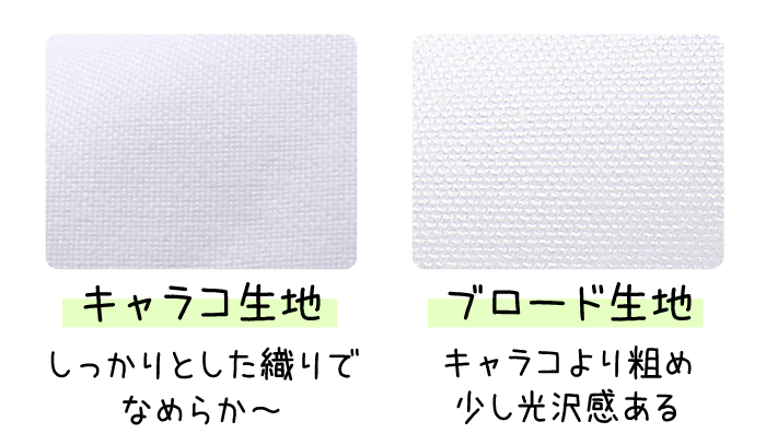 ブロードは綾織で柔らかく伸縮性に優れ、シワがよりにくいという特徴があります。